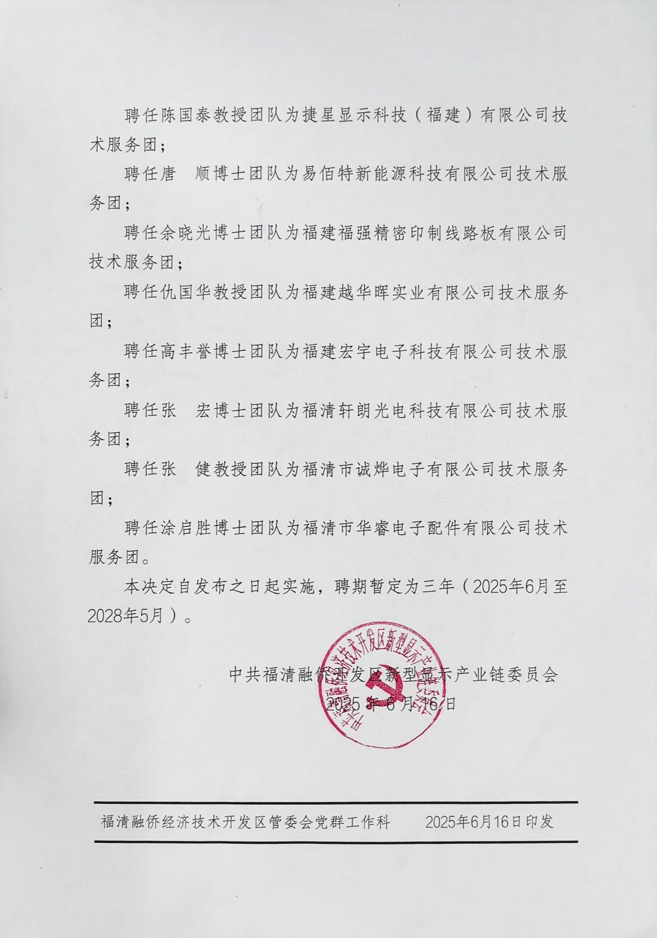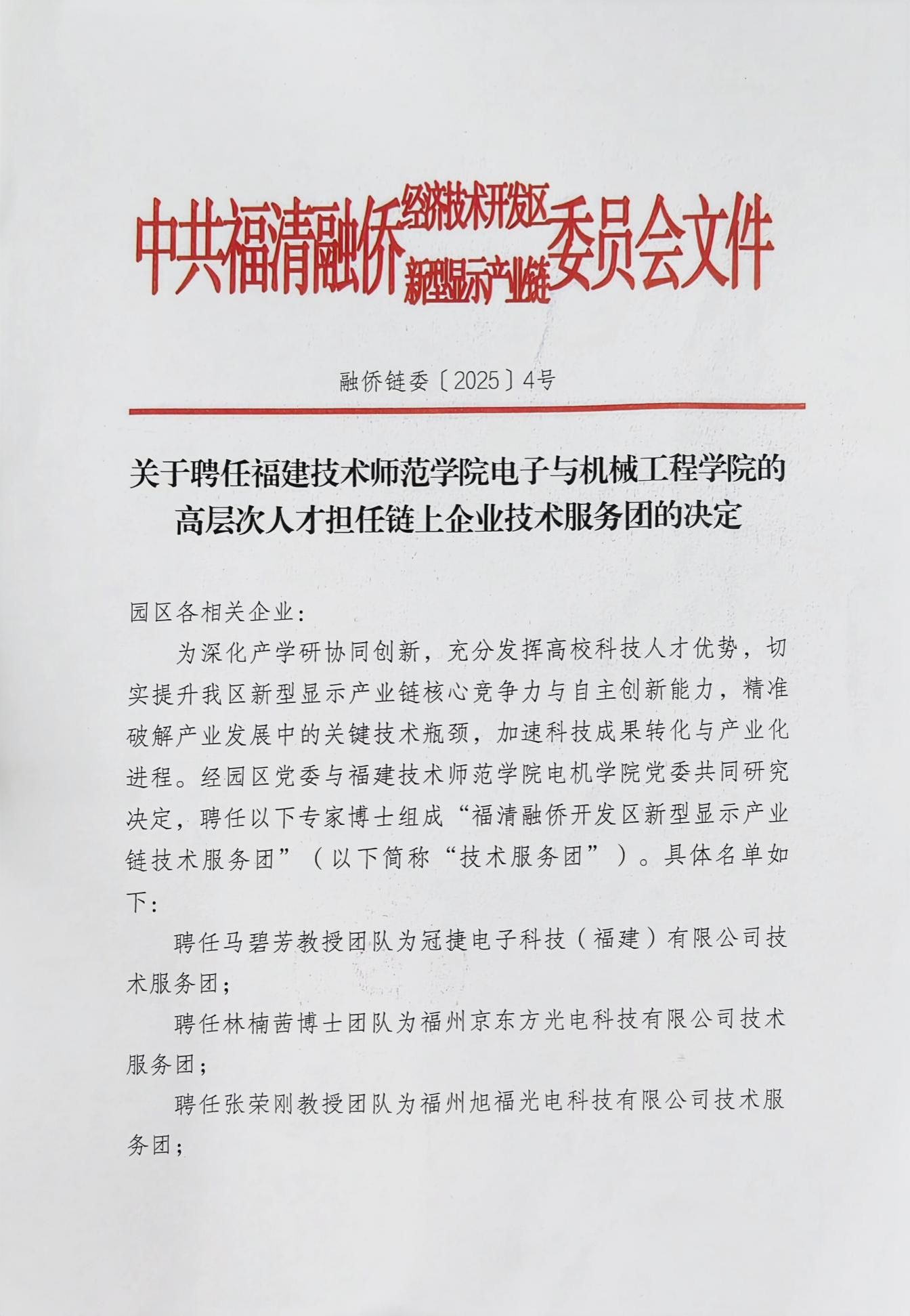 “企业面临的生产或技术研发的难题,就是我们研究的方向。我们将深入企业一线,与企业的技术骨干共同攻克,助力技术创新和企业发展,充分发挥高校的科研力量。”受聘博士代表余晓光表示,团队后续将紧密围绕融侨开发区重点打造的新型显示产业链条,在技术攻关、人才培养等领域持续发力,构建协同创新共同体。