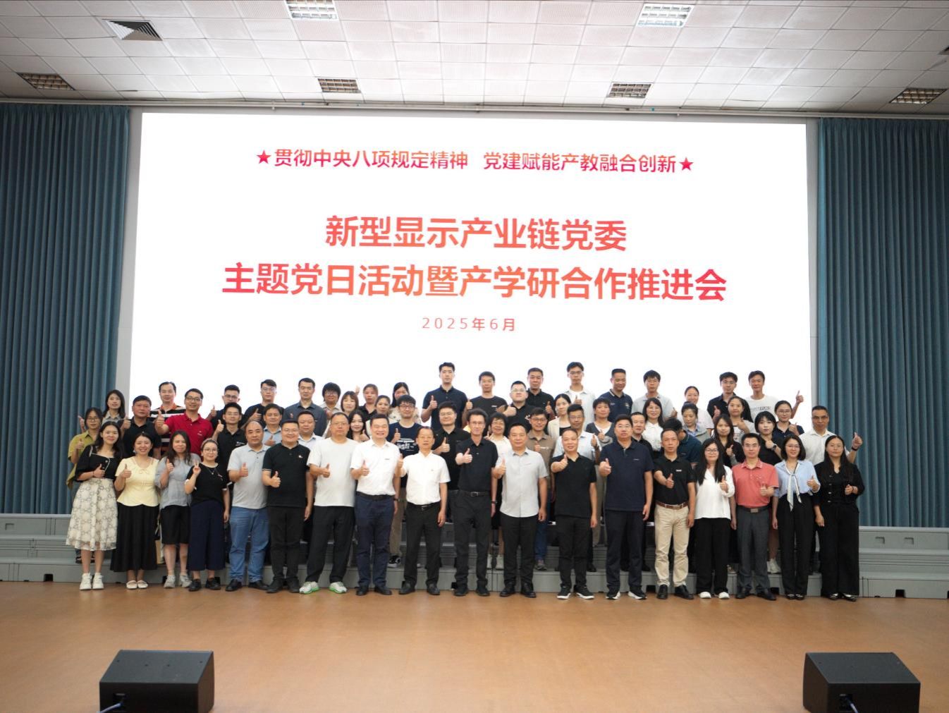6月17日,由福清融侨经济技术开发区新型显示产业链党委、福建技术师范学院电子与机械工程学院党委(以下简称“电机学院”)、福清市工业和信息化局机关党支部、冠捷电子科技(福建)有限公司党委联合主办的“贯彻中央八项规定精神 党建赋能产教融合创新”主题党日活动暨产学研合作推进会,在冠捷科技党建会议室及数字党建中心展厅顺利举行。此次活动以党建联建为纽带,搭建政校企协同平台,推动产教深度融合,为福清市新型显示产业高质量发展注入强劲动能。