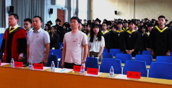 毕业典礼在雄壮的国歌声中拉开帷幕。全体师生起立奏唱中华人民共和国国歌,激昂的旋律中,凝聚着毕业生对祖国的热爱与对未来的憧憬。
