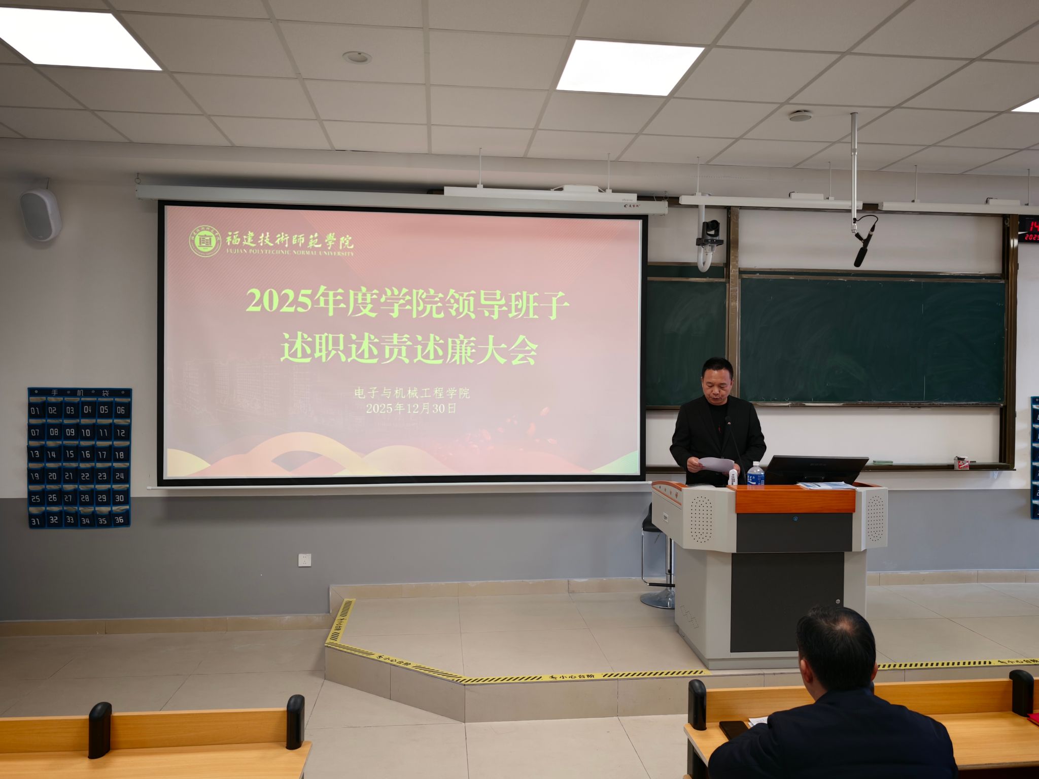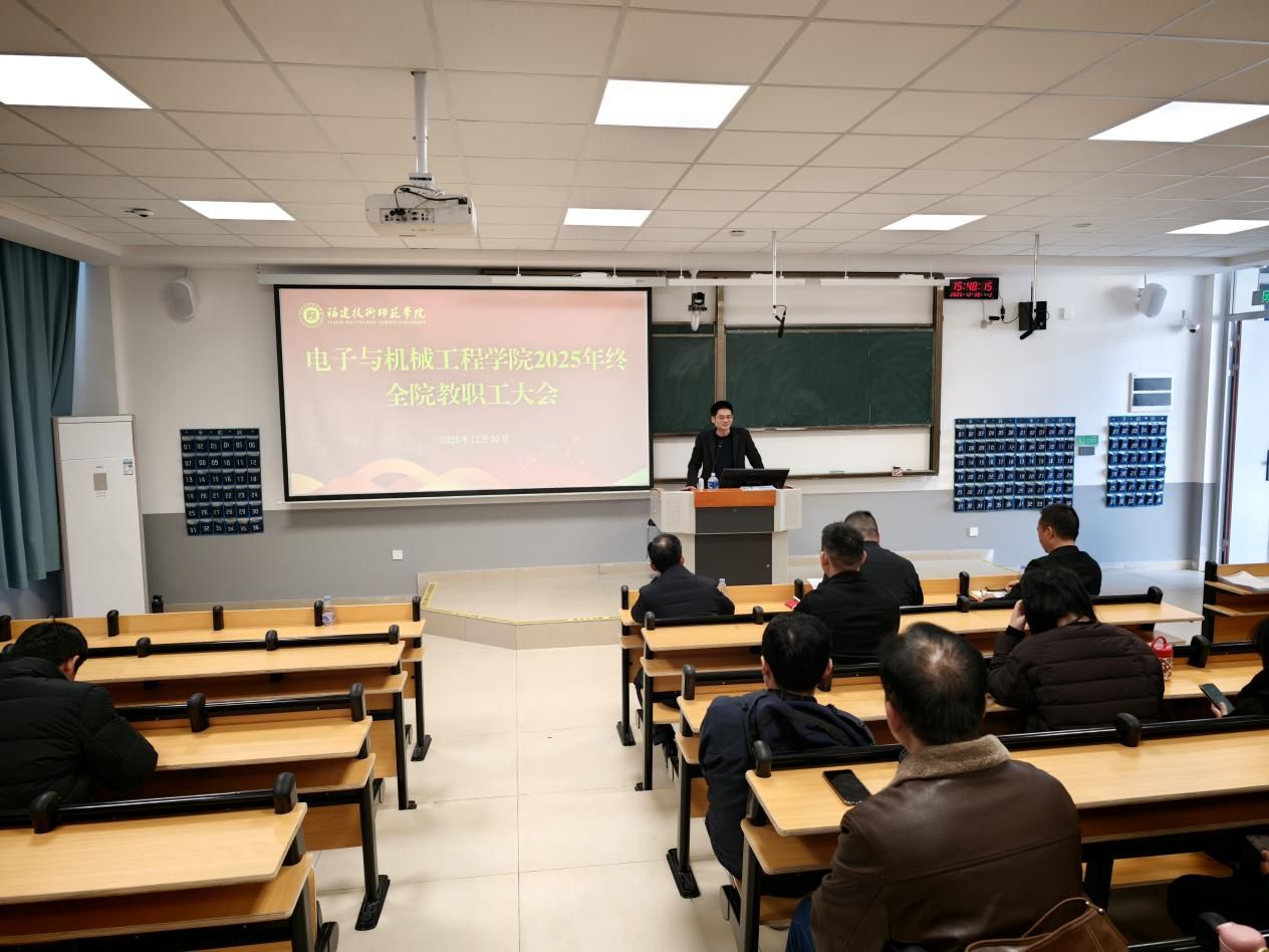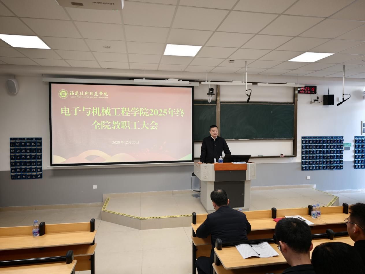 2025年12月30日,我院2025年度党政领导述职述责述廉大会暨全院教职工大会在笃行5#304顺利召开。学院党政领导班子成员、全体教职工参加会议,会议由林景亮副书记(主持工作)主持。