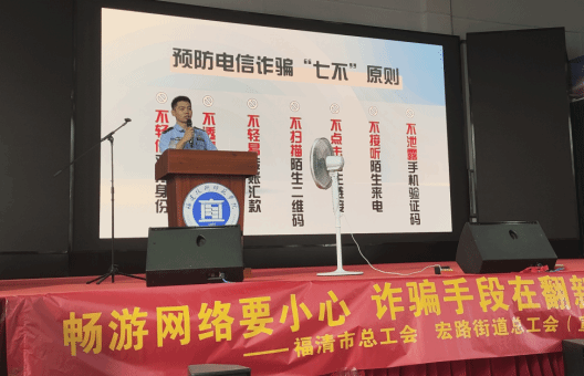 李岚星队长结合自身长期的工作经验,重点讲解了信息网络安全问题。从什么是电信诈骗、电信诈骗的常见形式、如何识别防范电信诈骗、断卡行动、电信诈骗的违法成本以及《反电信网络诈骗法》等6大版块出发,以案说法、以警示人,引导同学们提升对信息网络诈骗的警惕性。