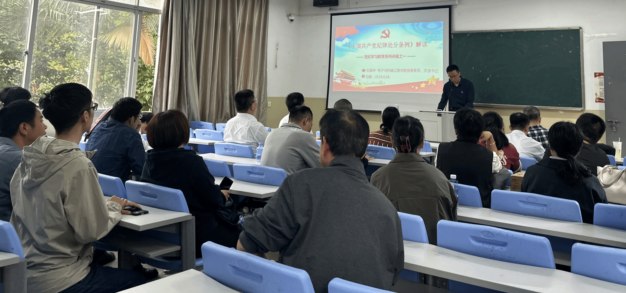 2024年4月24日星期三下午,根据中共福建技术师范学院电子与机械工程学院委员会印发的《中共福建技术师范学院电子与机械工程学院委员会开展党纪学习教育的工作方案》的通知,电子与机械工程学院教工党支部在石竹校区教学楼J1-205教室开展了党纪学习教育工作安排动员会,教工党支部全体党员参加会议。会上,支部书记仇国华为全体党员介绍了开展党纪学习教育的要求和安排,并上了专题党课,解读了《中国共产党纪律处分条例》的主要内容,要求大家要进一步增强党员的纪律意识和规矩意识,不断提高自己的思想觉悟和政治素质,在日常的工作生活中发挥先锋模范作用,推动学院各项工作的不断进步。