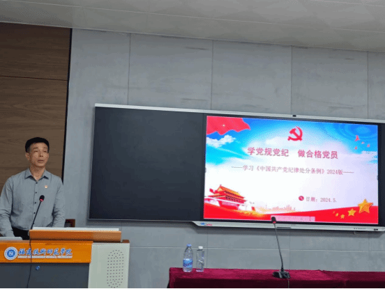 为了深入学习贯彻习近平总书记关于党纪学习教育的重要讲话和重要指示精神,推动党纪学习教育扎实开展,5月17日,院党委书记高潮以《学党规党纪,做合格党员--学习<中国共产党纪律处分条例>》为题,为学院学生党员上了一堂生动的专题党课。