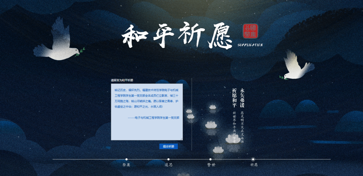 庄严而肃穆的默哀仪式结束之后,党支部的党员们怀着诚挚且深沉的情感,自发地通过国家公祭日的官方网站,为来之不易的和平祈愿。