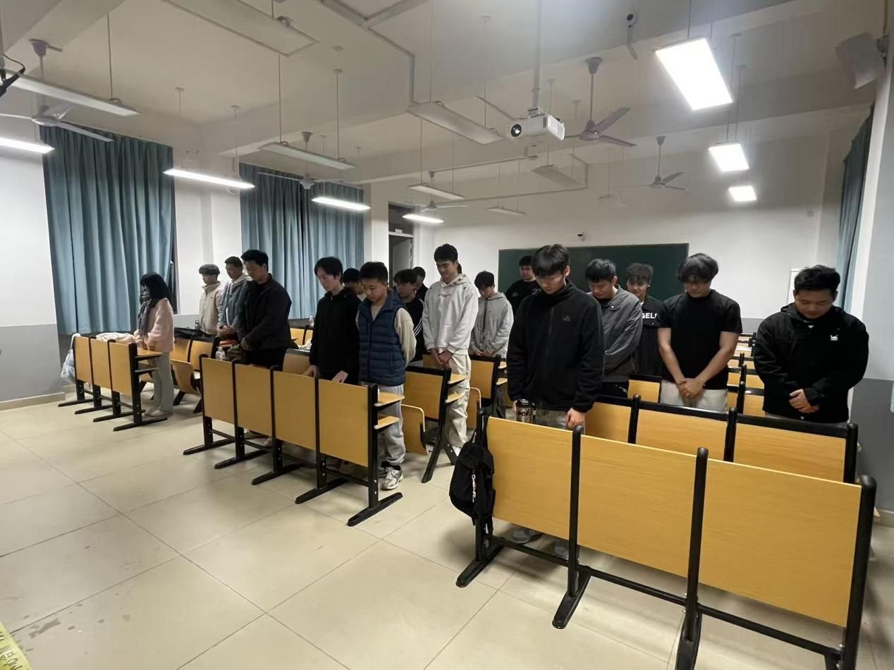 福建技术师范学院电子与机械工程学院学生第一党支部开展公祭日默哀活动,致敬已故英雄。
